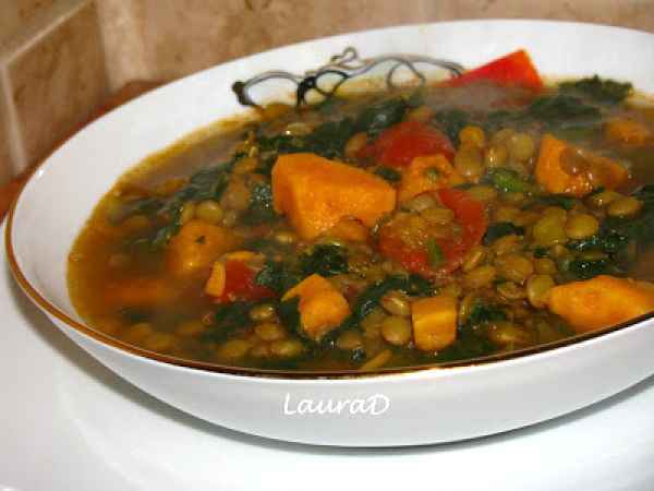 Dahl cu cartofi dulci, spanac si linte verde