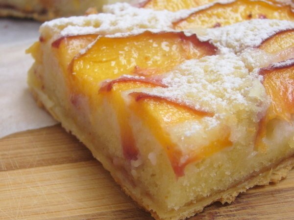 L-am uns cu gem de prune ( la Ramona nu era mentionat) si am turnat umplutura. Deasupra am asezat piersicile taiate felii subtiri, apoi am introdus la cuptor pentru inca 20 - 30 minute. Deasupra s-a colorat usor auriu, de acolo am stiut ca este gata tarta.